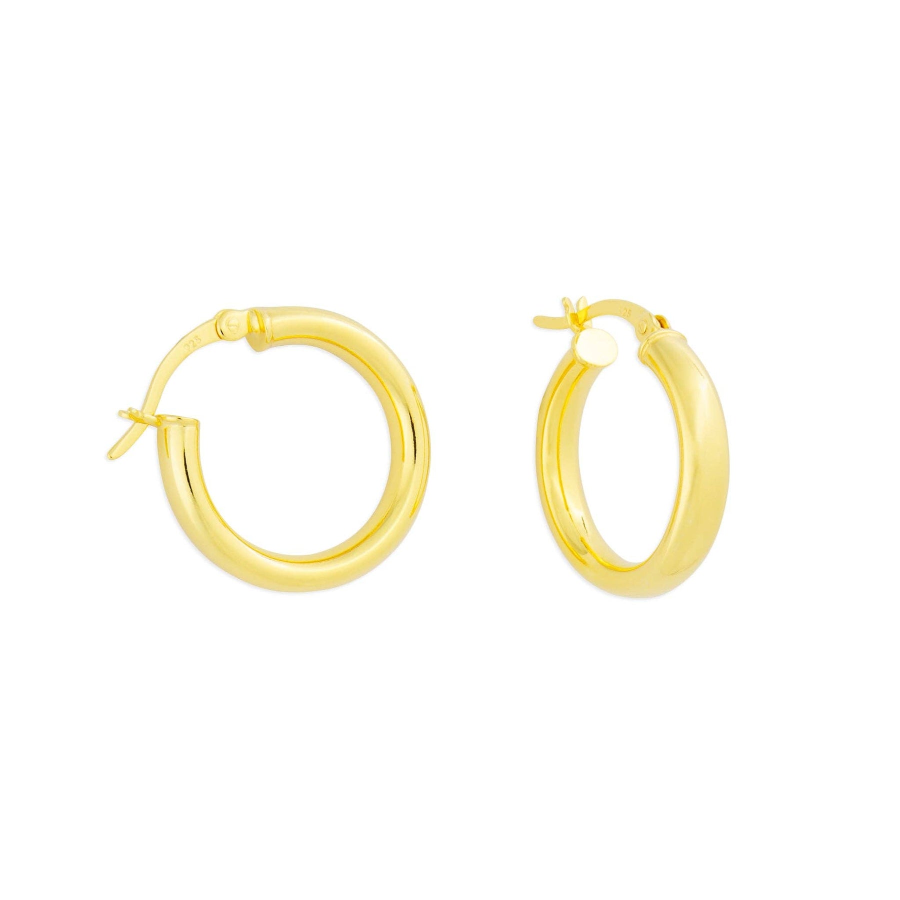 The perfect everyday hoops you'll want to live in. 18k gold plated sterling silver, 3/4" in diameter, lightweight, hypoallergenic.