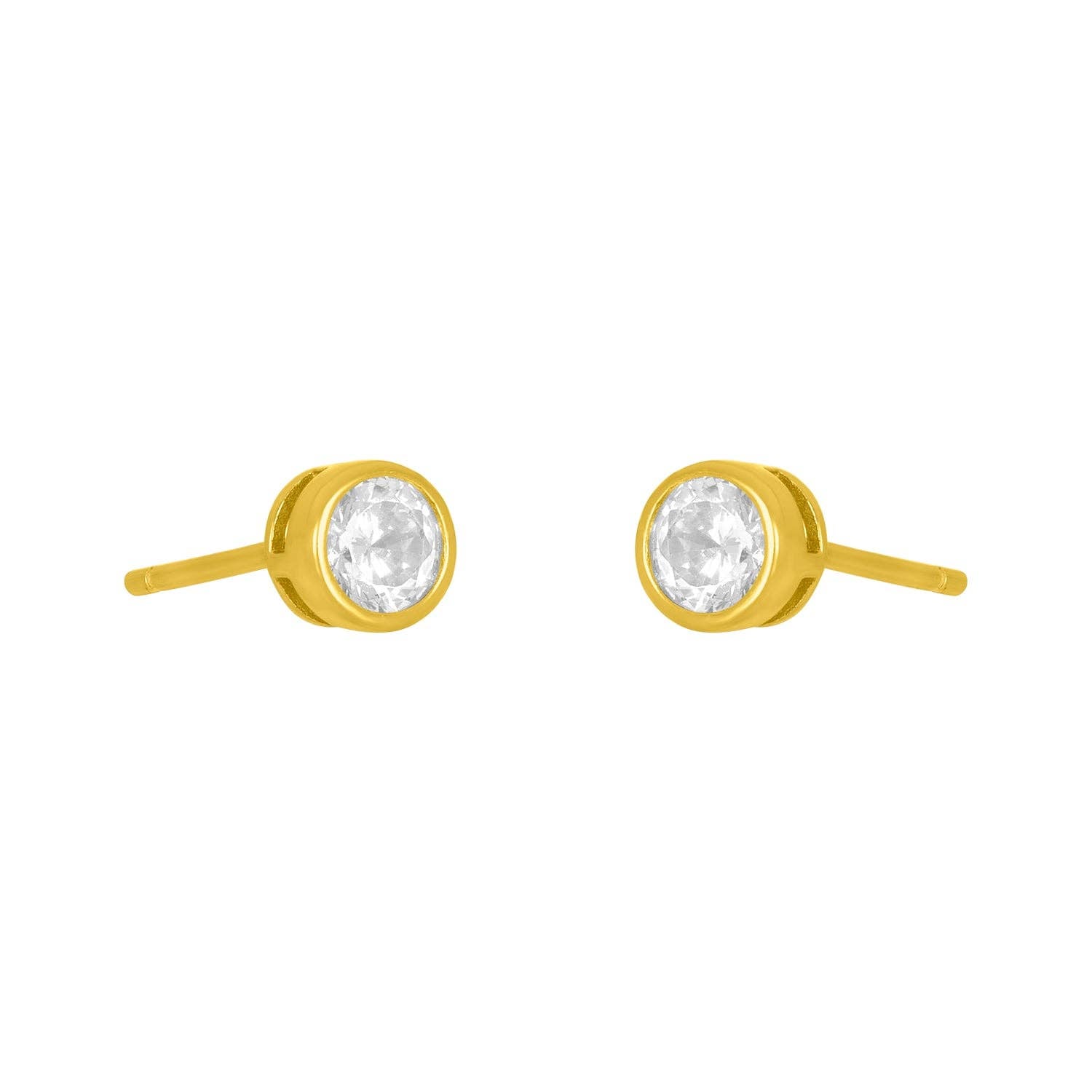 These 4mm Marisol studs are crafted from 925 sterling silver with a shiny 18k gold plating, sparkling with cubic zirconia. They’re gentle on sensitive ears, making them a hypoallergenic favorite!