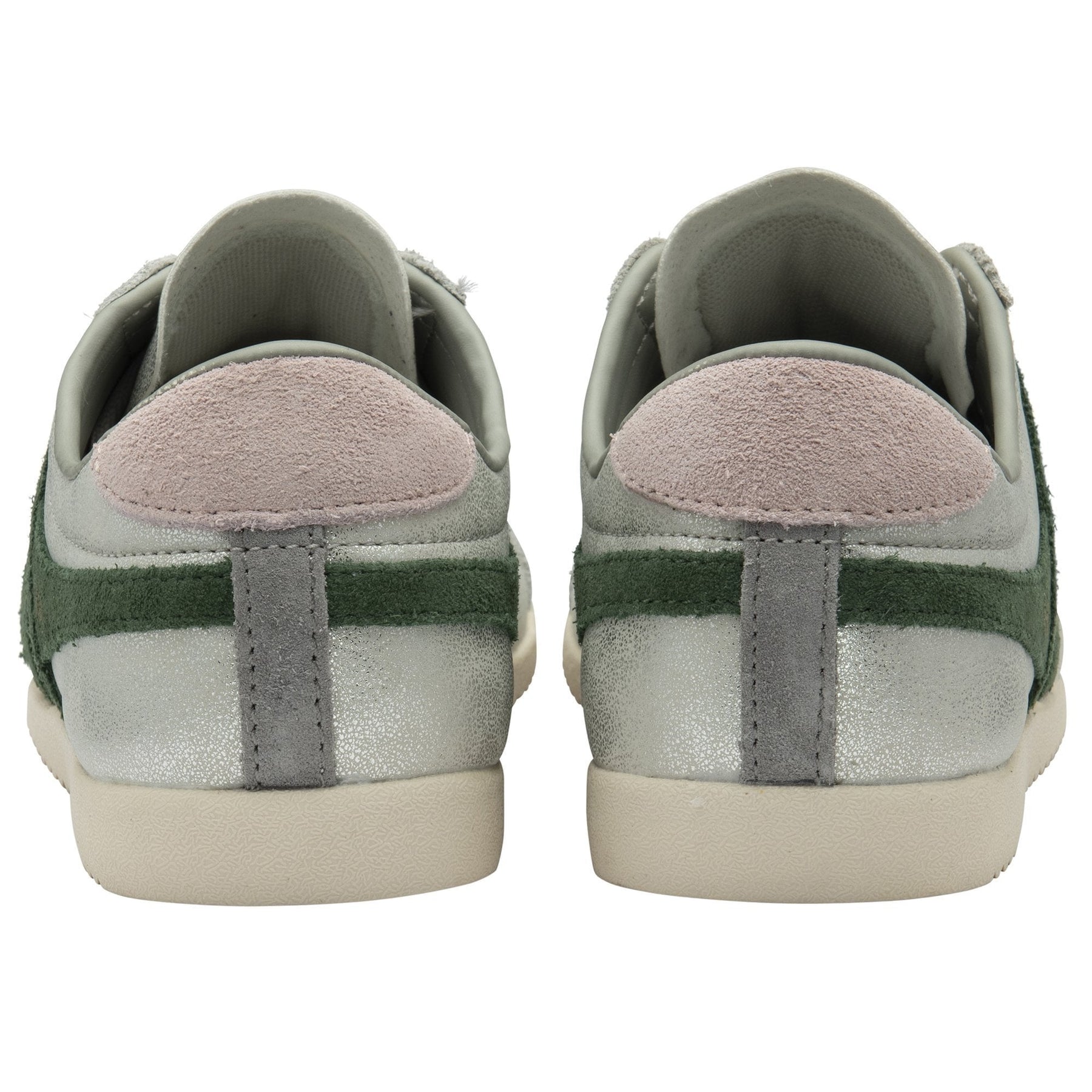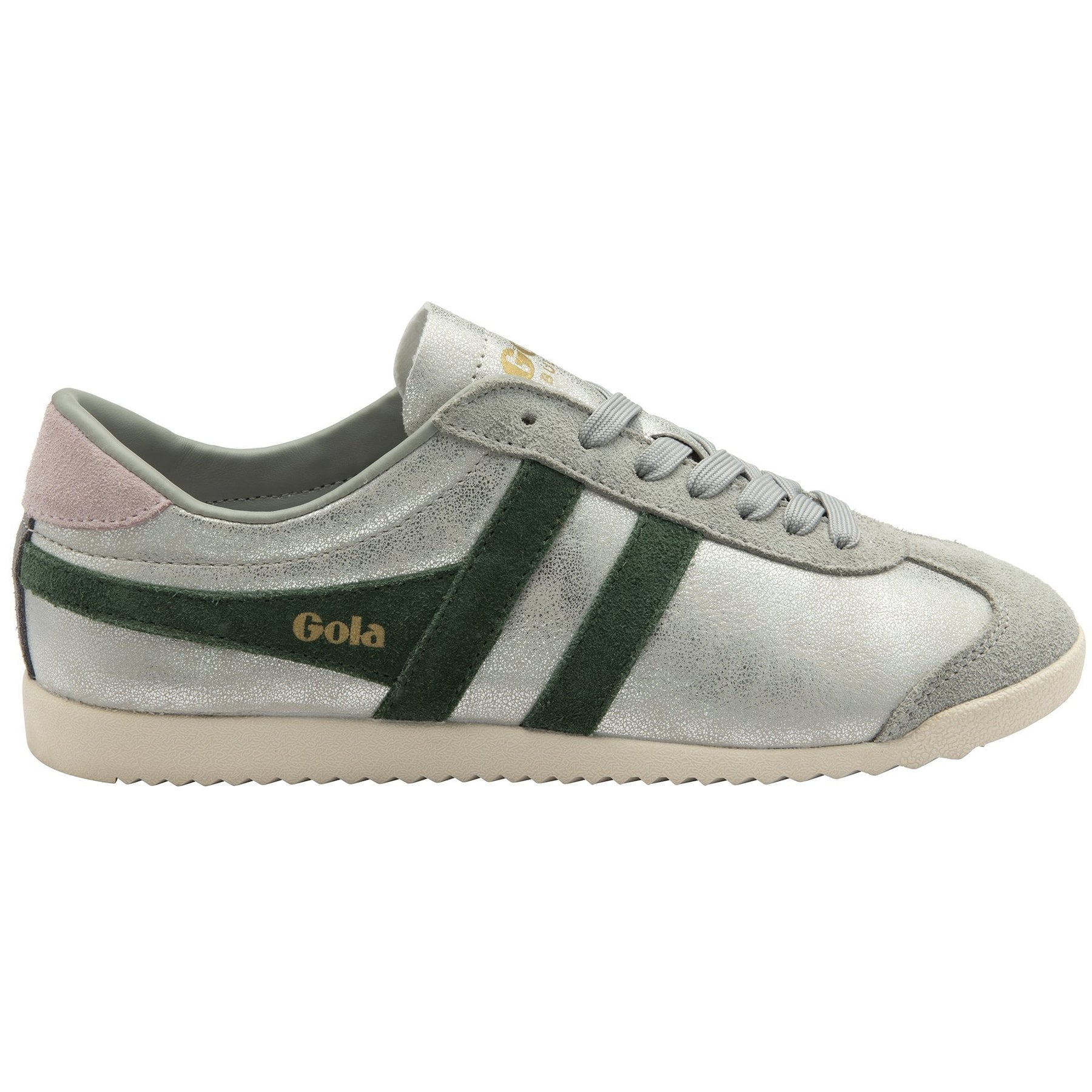 Gola ladies’ Bullet is a classic of the footwear world and it has been given a metallic update in the form of Bullet Blaze. Ladies’ Bullet Blaze features a muted silver upper, contrasting evergreen wingflash, suede heel tab and the iconic Gola branding to the side and tongue. This low-profile sleek style will add a chic and feminine edge to any outfit.