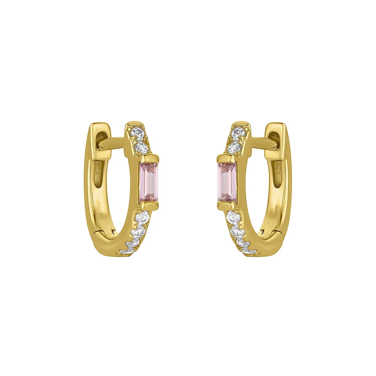 18k gold plated sterling silver, cubic zirconia, hypoallergenic. Comes packaged on our heart shaped "littles" earring card.
