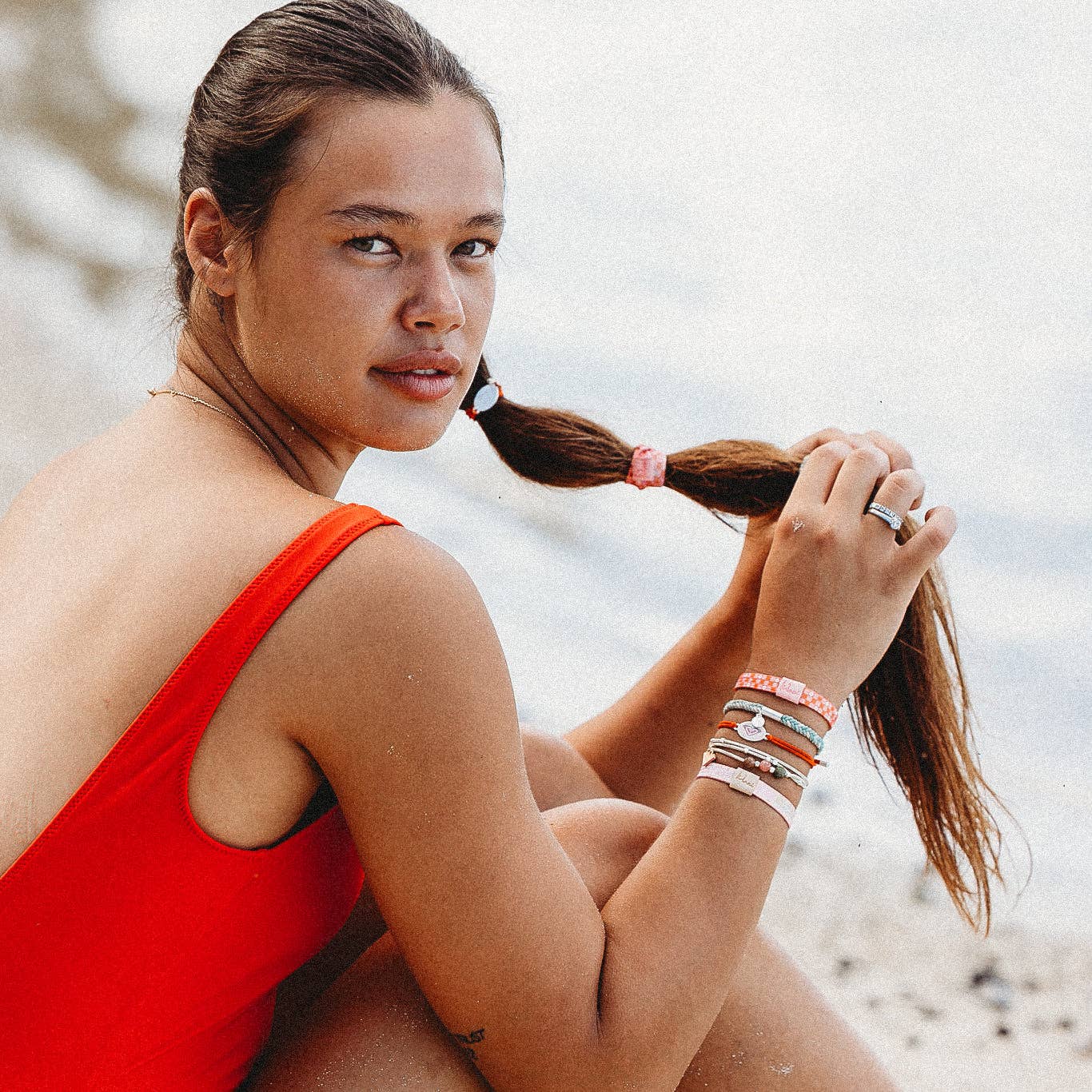 Capture the warmth of golden hour with the Roxy Pink Tropics set. This Roxy × K’Lani collab features playful corals, sunset pinks, and natural stone beads for a look that’s uplifting and effortless. Whether you're chasing waves or chasing dreams, these hair tie bracelets add the perfect touch of color and confidence. Soft, strong, and made for every moment under the sun. Medium is the size of a normal hair tie band. It fits wrists between 5-6.4" around.