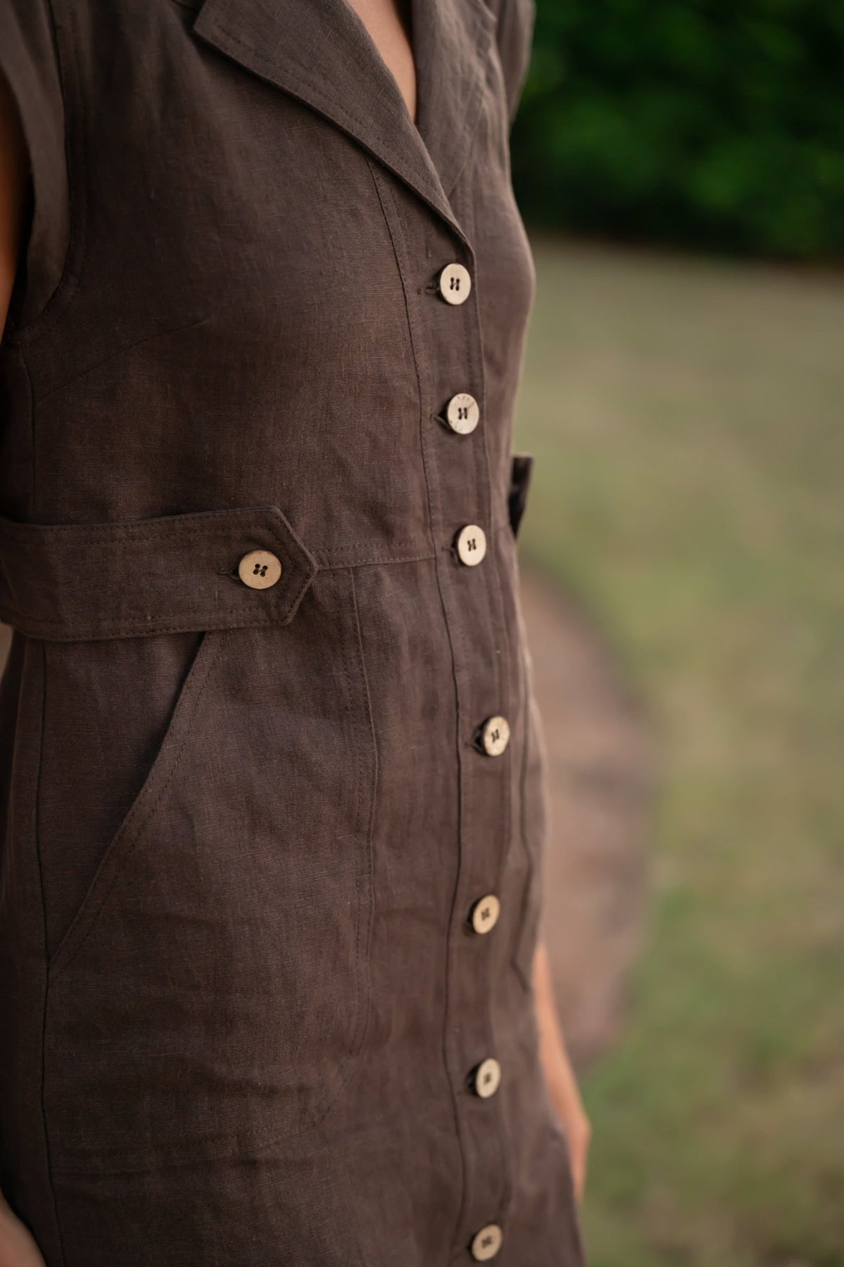 Step into effortless charm with the Freya Dress, a playful brown linen piece designed to keep you cool and stylish. Featuring a sleeveless cut, a classic collar, and delicate button details, it’s perfect for sunny days and spontaneous adventures. Comfortable and breezy, this dress adds a touch of casual sophistication to your wardrobe with ease.