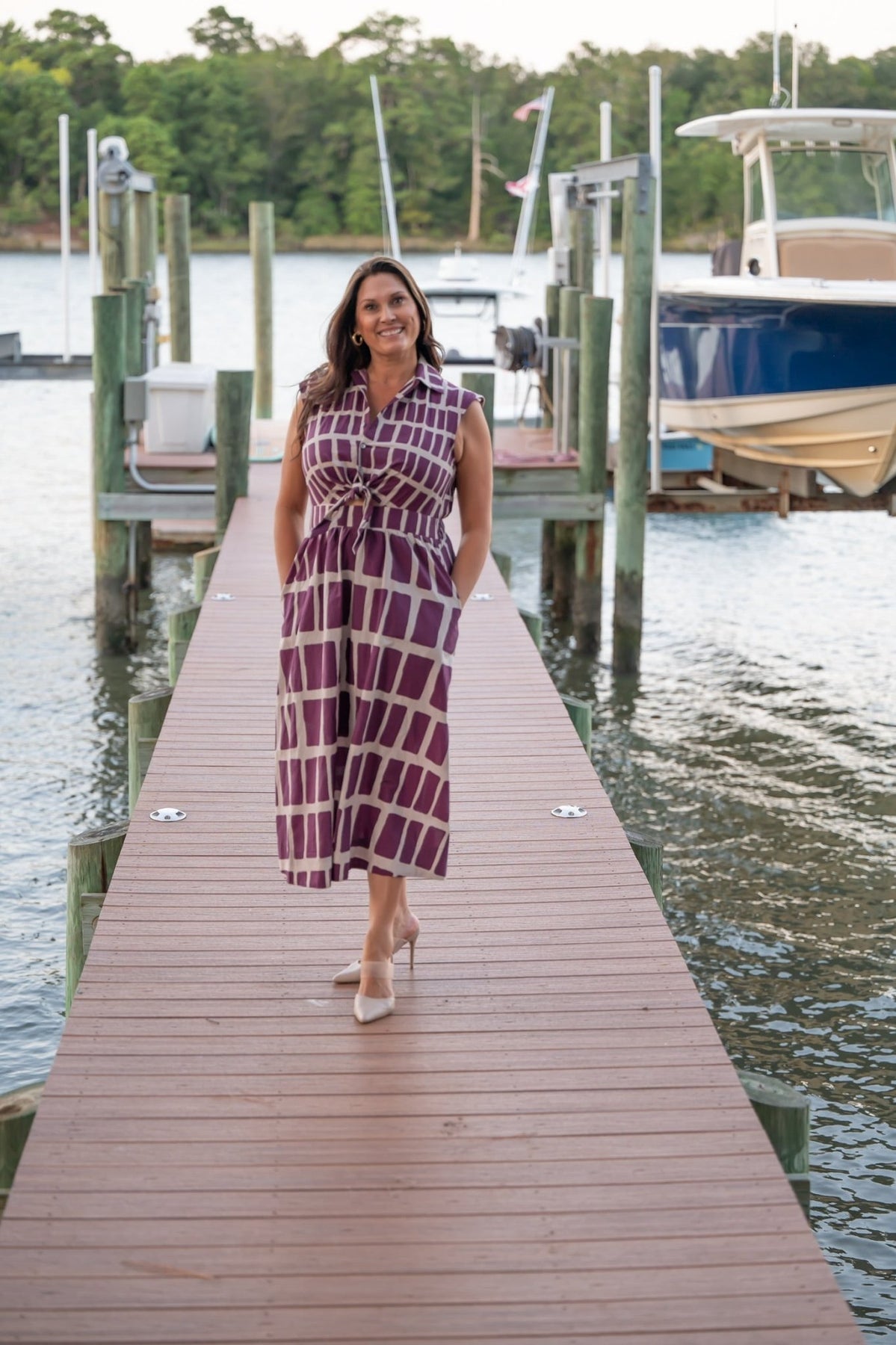 This sleeveless midi dazzles with a playful abstract print, a button-front collar with a charming knot closure, and pockets! The smocked back waistband shapes your silhouette while the lightweight woven fabric keeps you comfy and breezy all day. Fully lined and non-sheer, it’s your new go-to for effortless style with a fun twist.